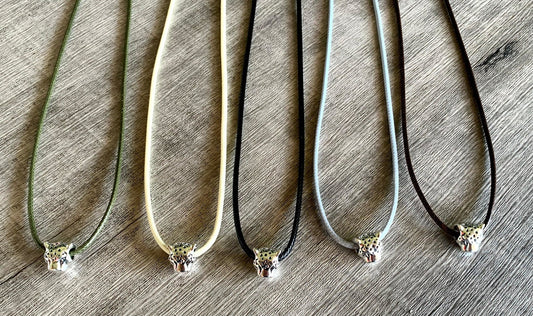 Unisex Handmade Leopard on Faux Leather Cord Necklace