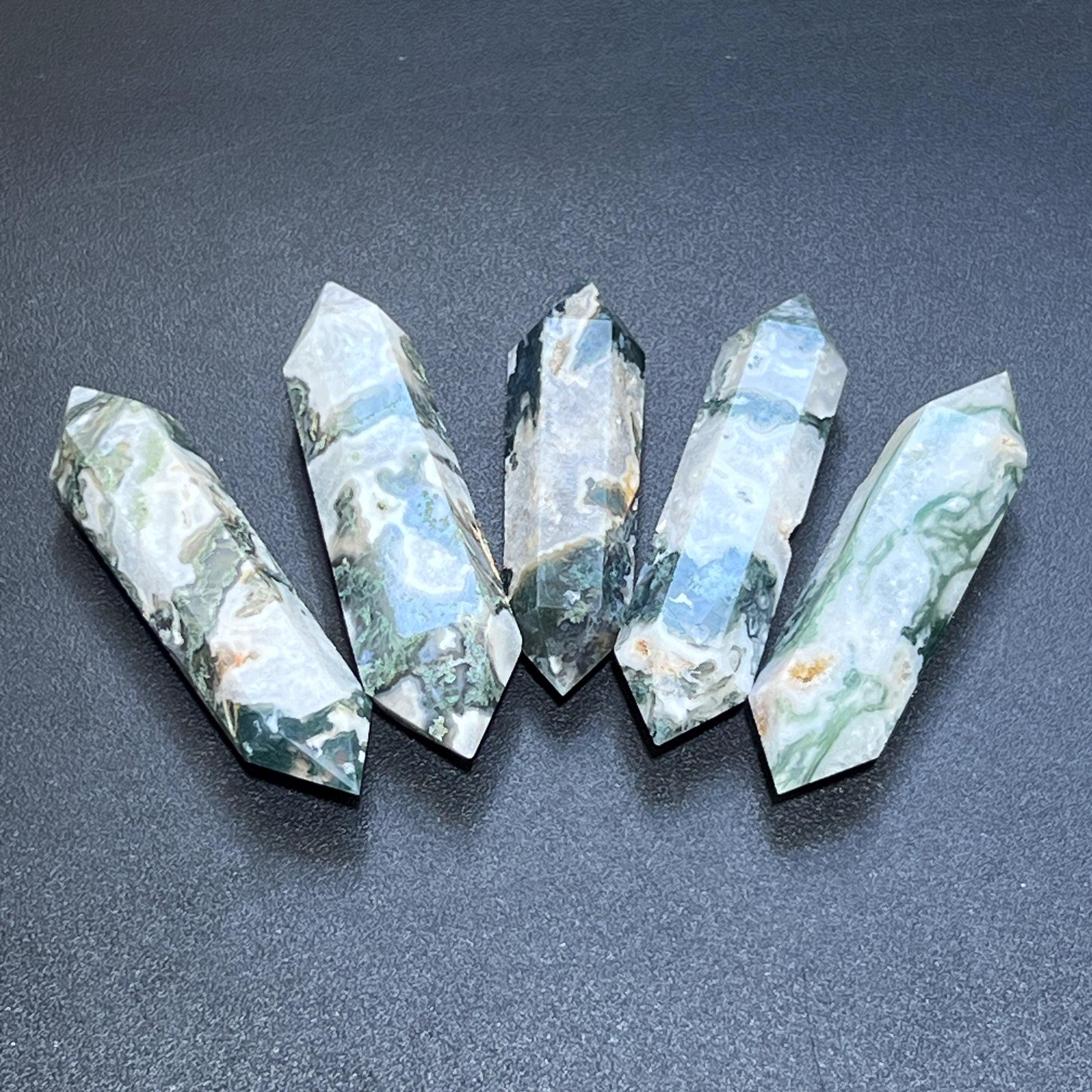 Moss Agate Crystal Double Terminated Point Gemstone Wand Carving Home Decor Supply