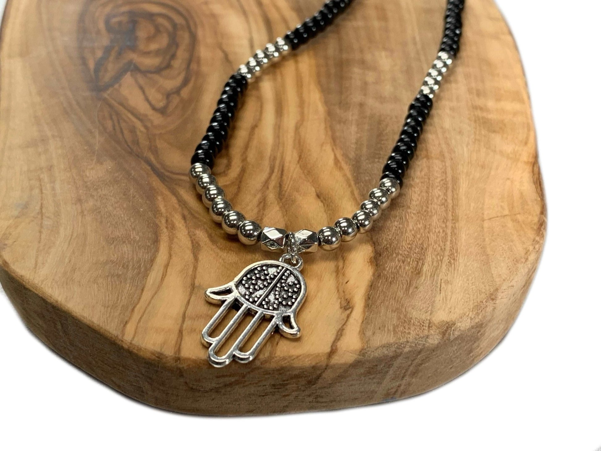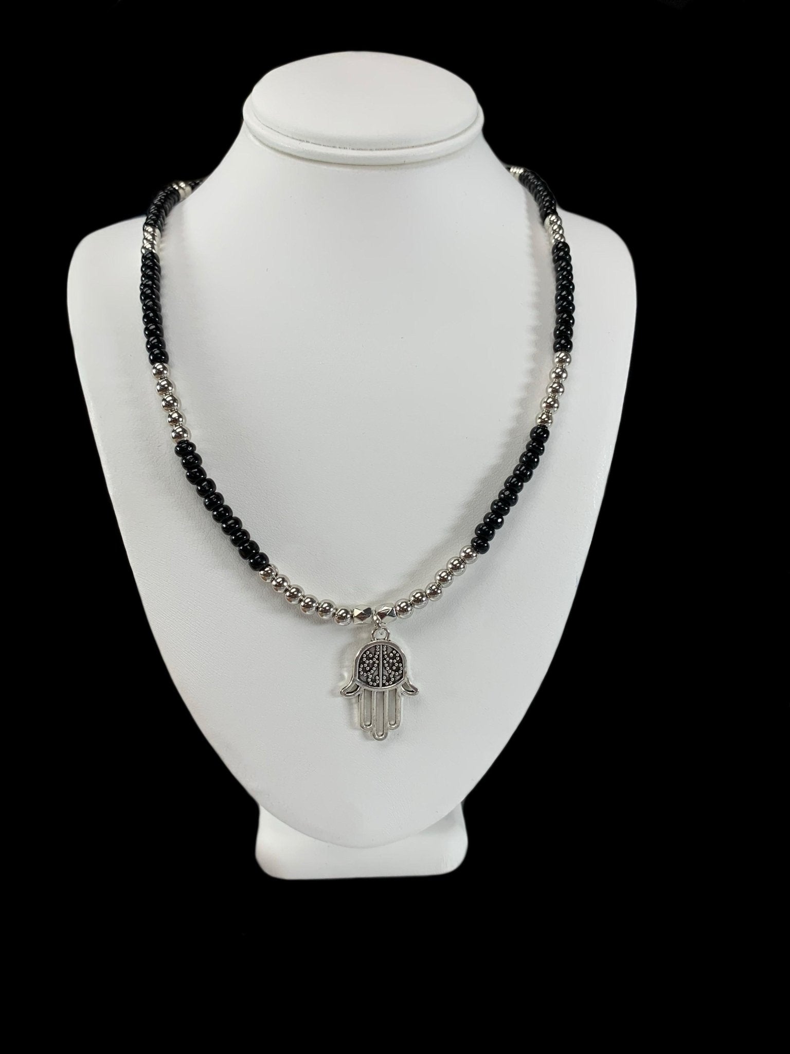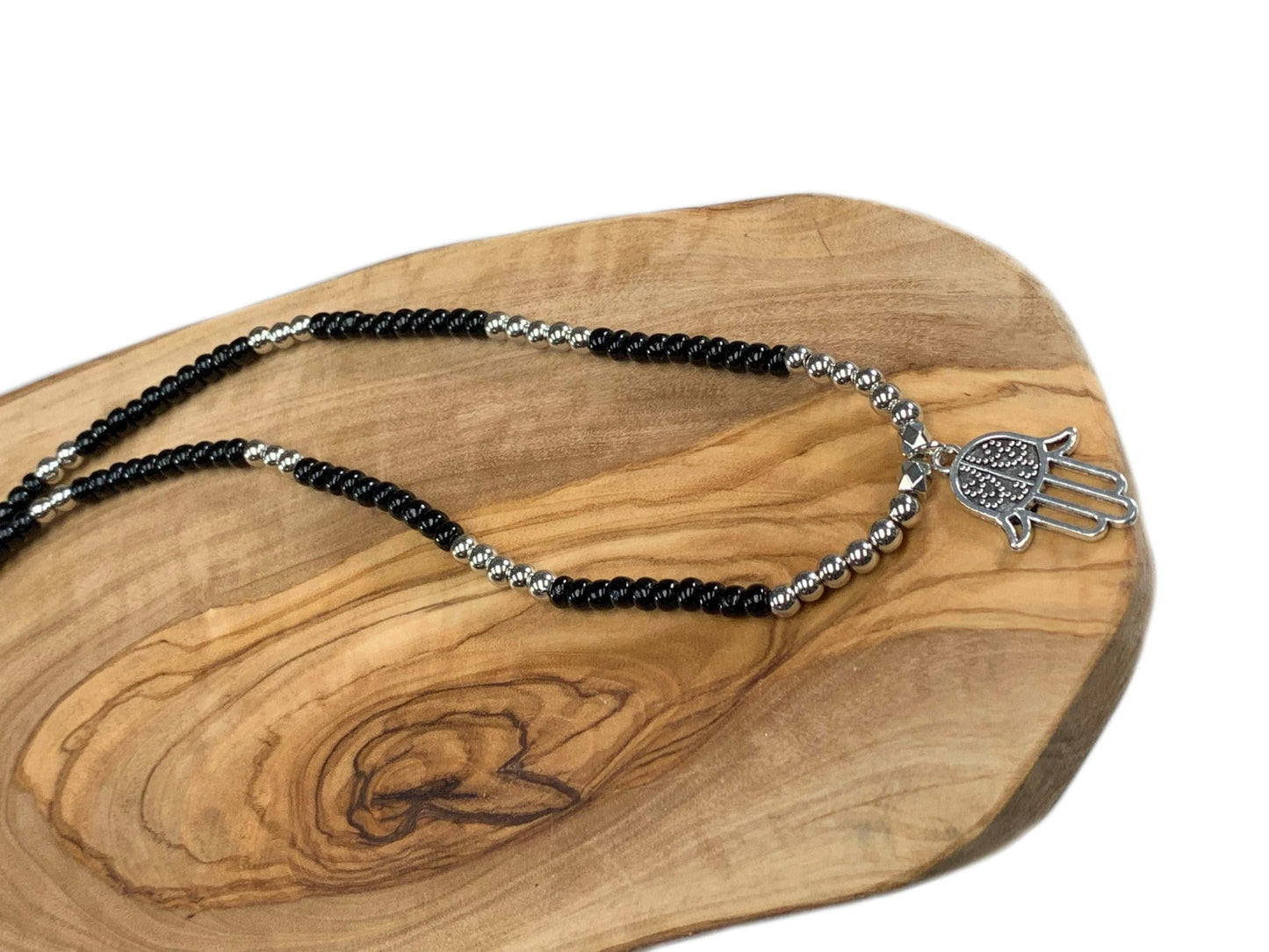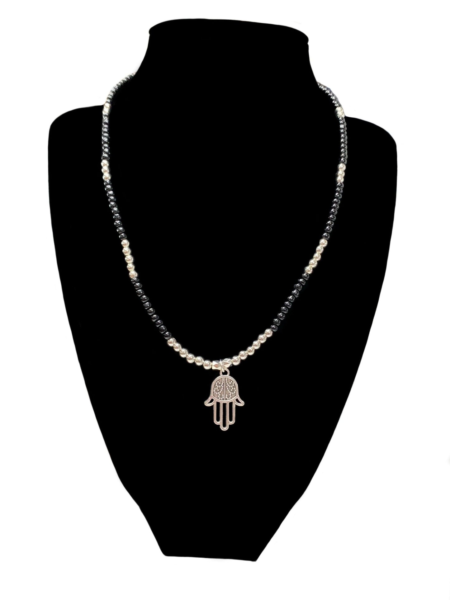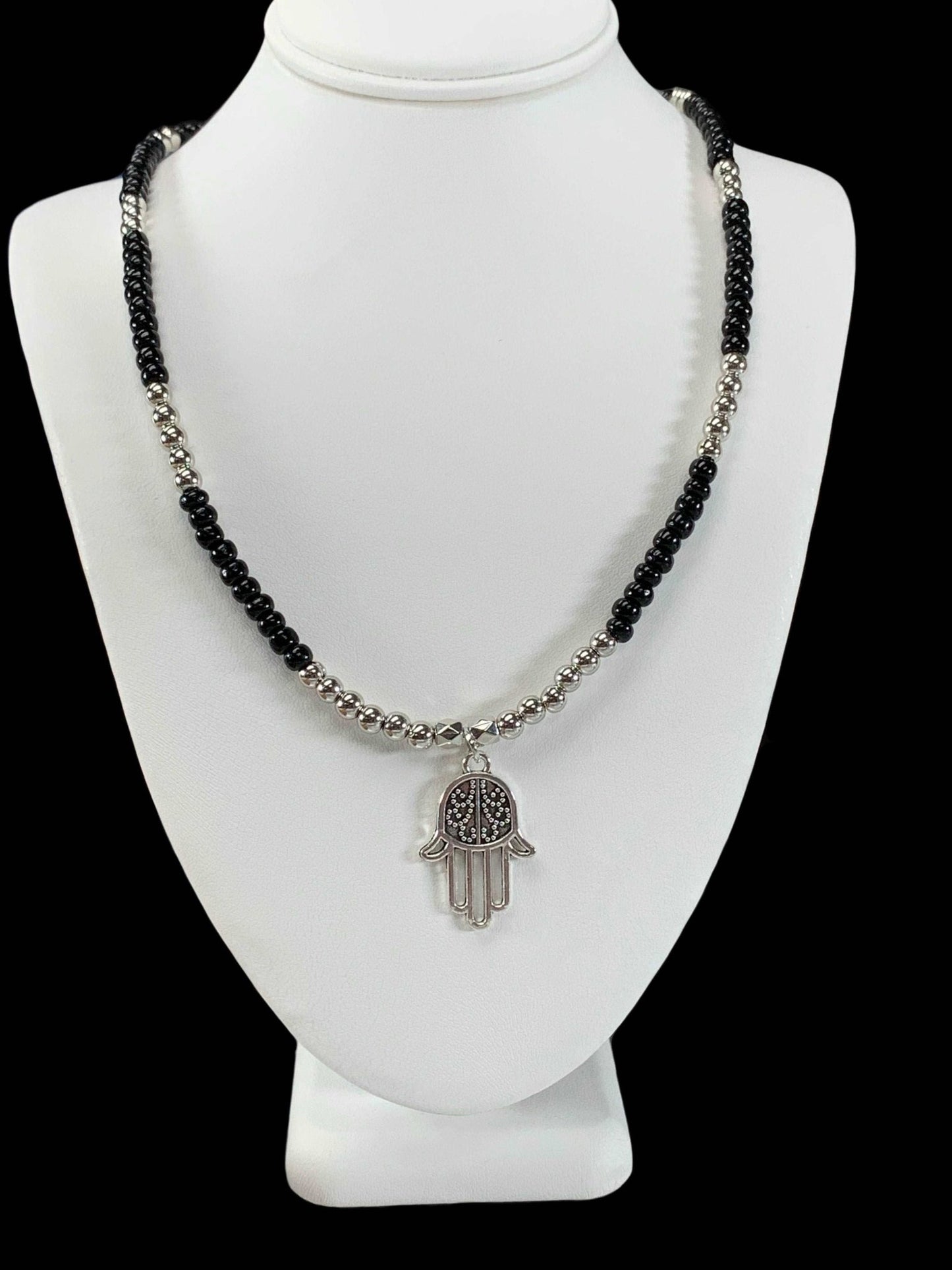 Alexa Handmade Beaded Necklace with Silver Hamsa Pendant
