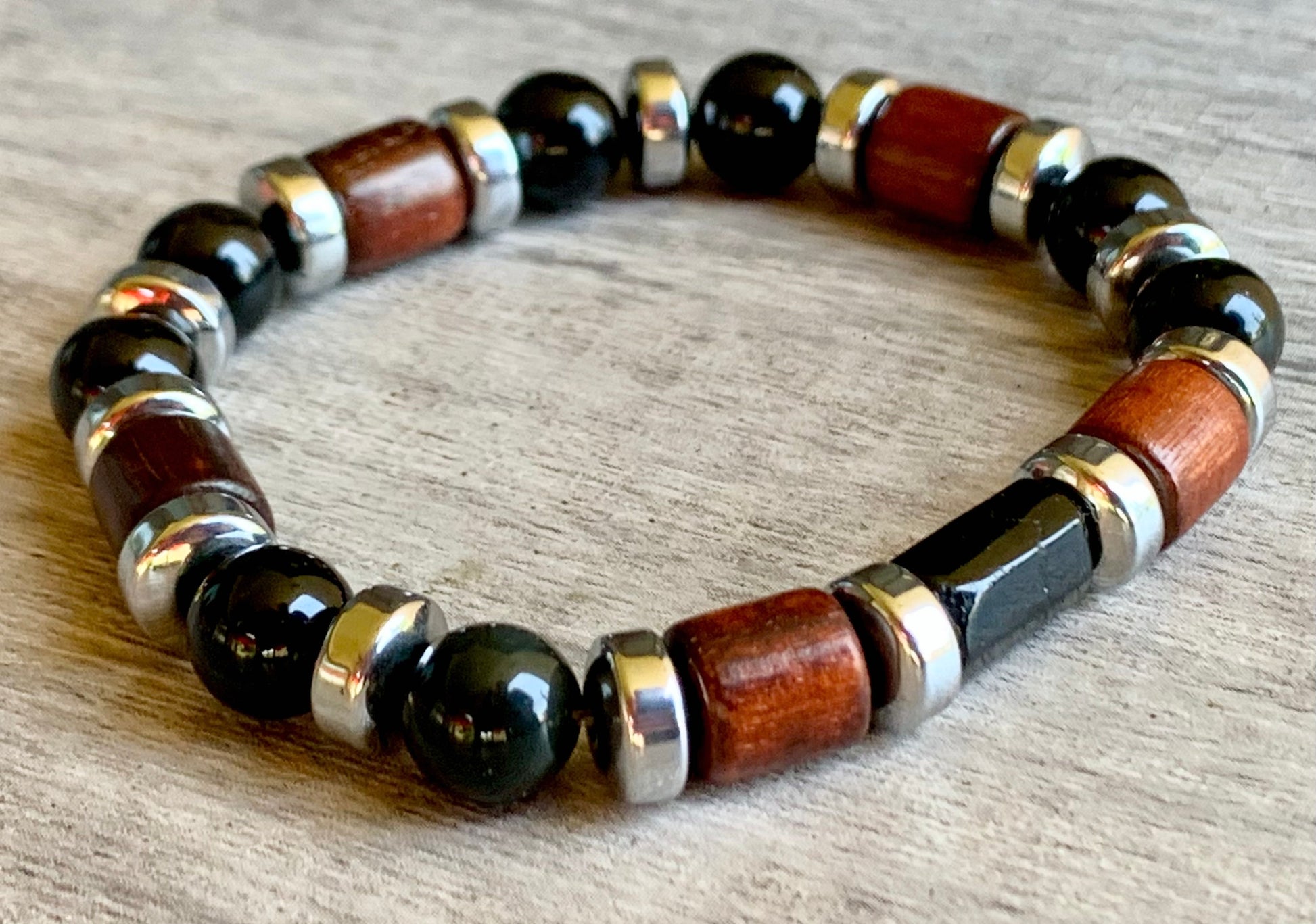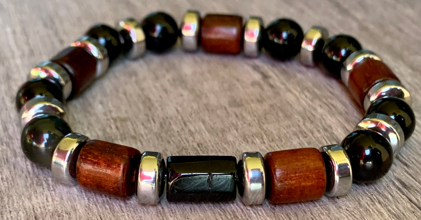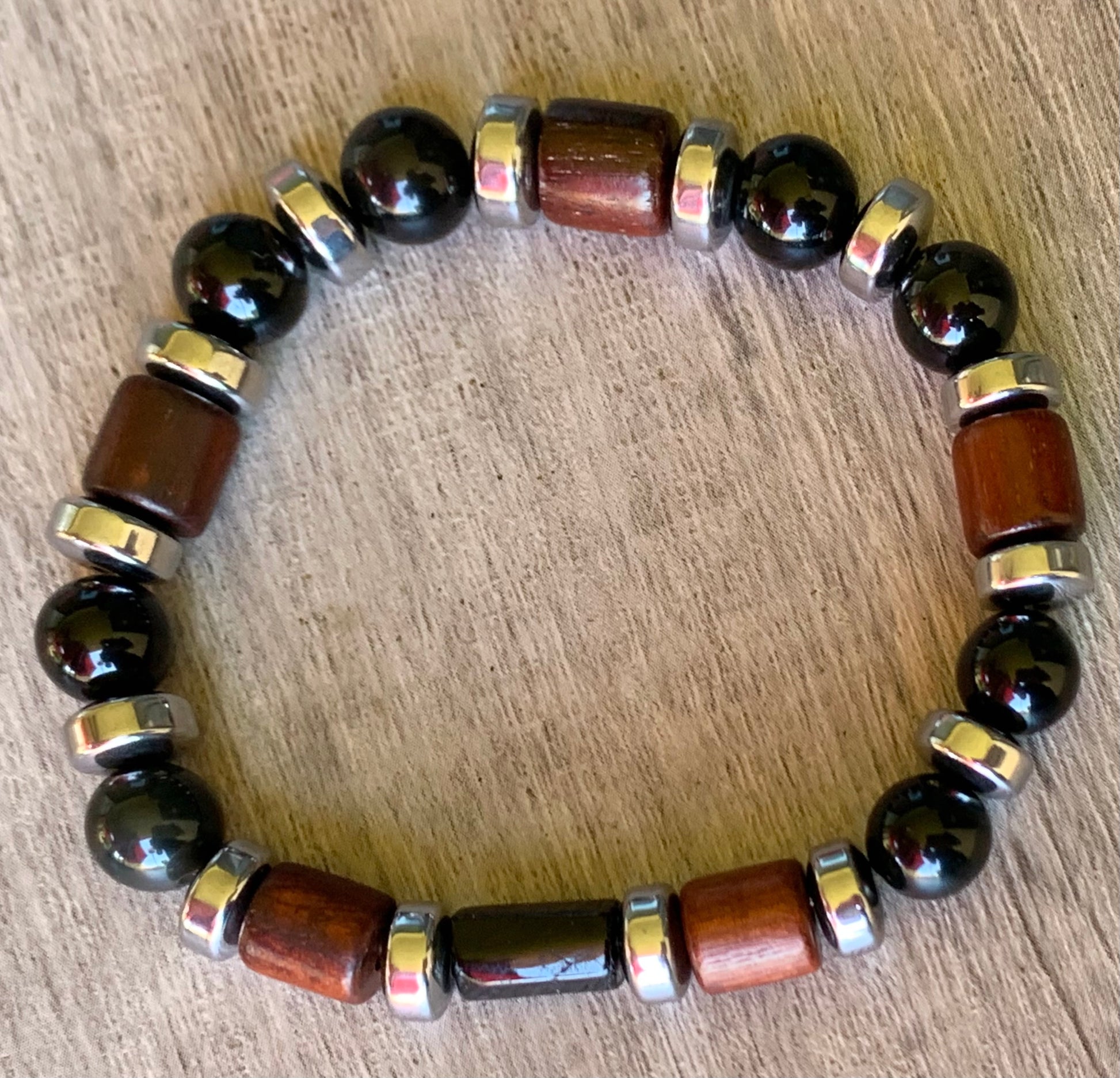 🔴SOLD🔴Jules Handmade Black Tourmaline, Obsidian, Hematite, and Wood Expandable Bracelet