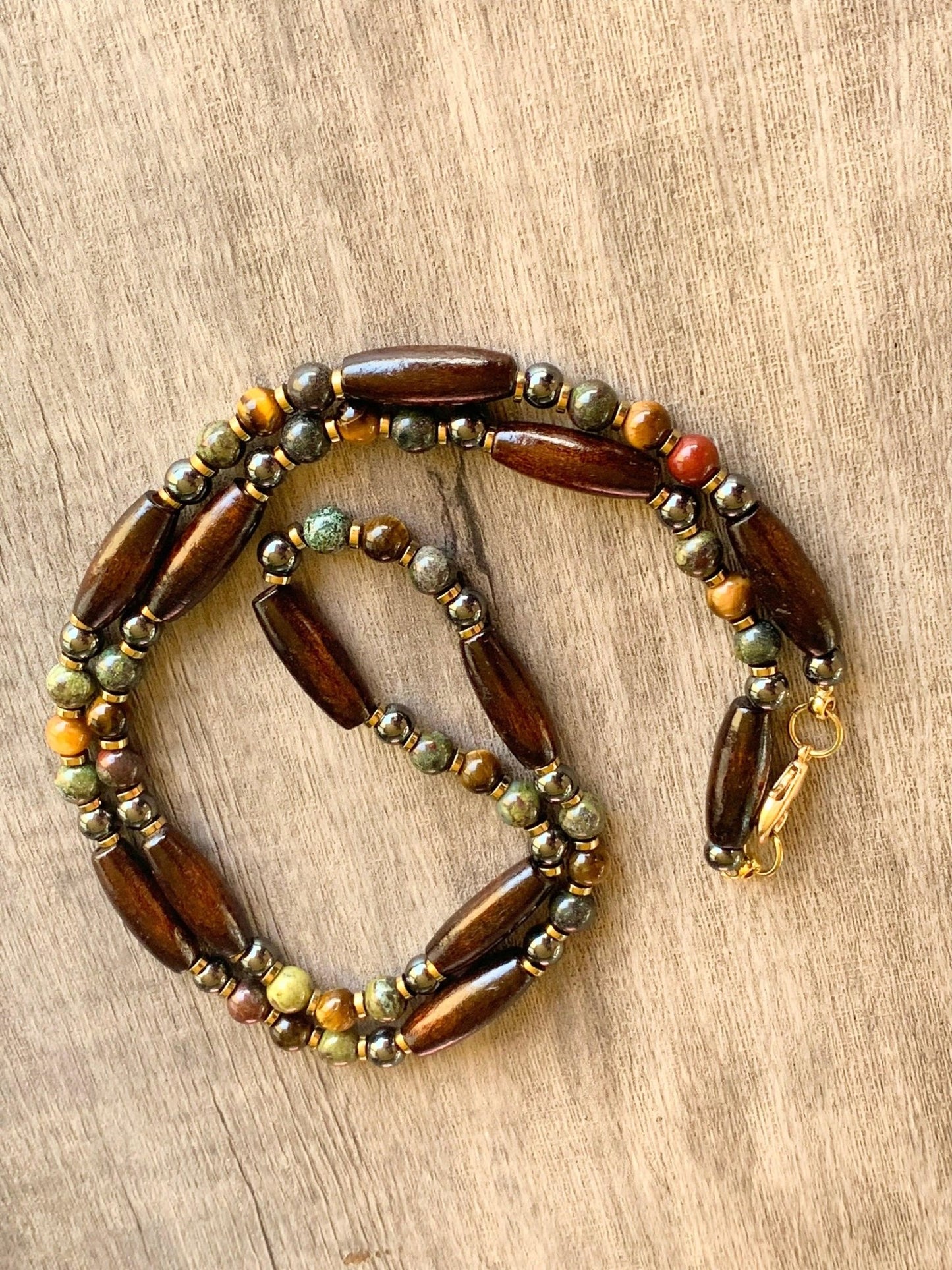 #bornmystics #bloodstone #dragonbloodstone #tigerseye #hematite #wood #gemstonejewelry #mixedgemstonenecklace #unisex #mensaccessories #ladiesaccessories #womensaccessories #giftsforhim #giftsforher #gaia #raiseyourvibration #lawofattraction #wearablemagic