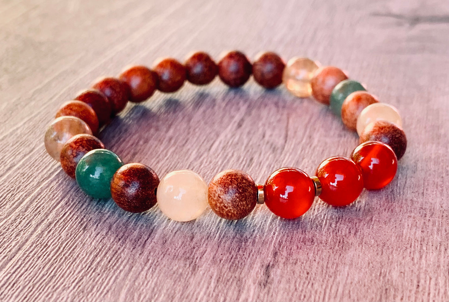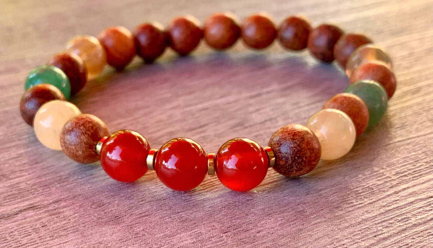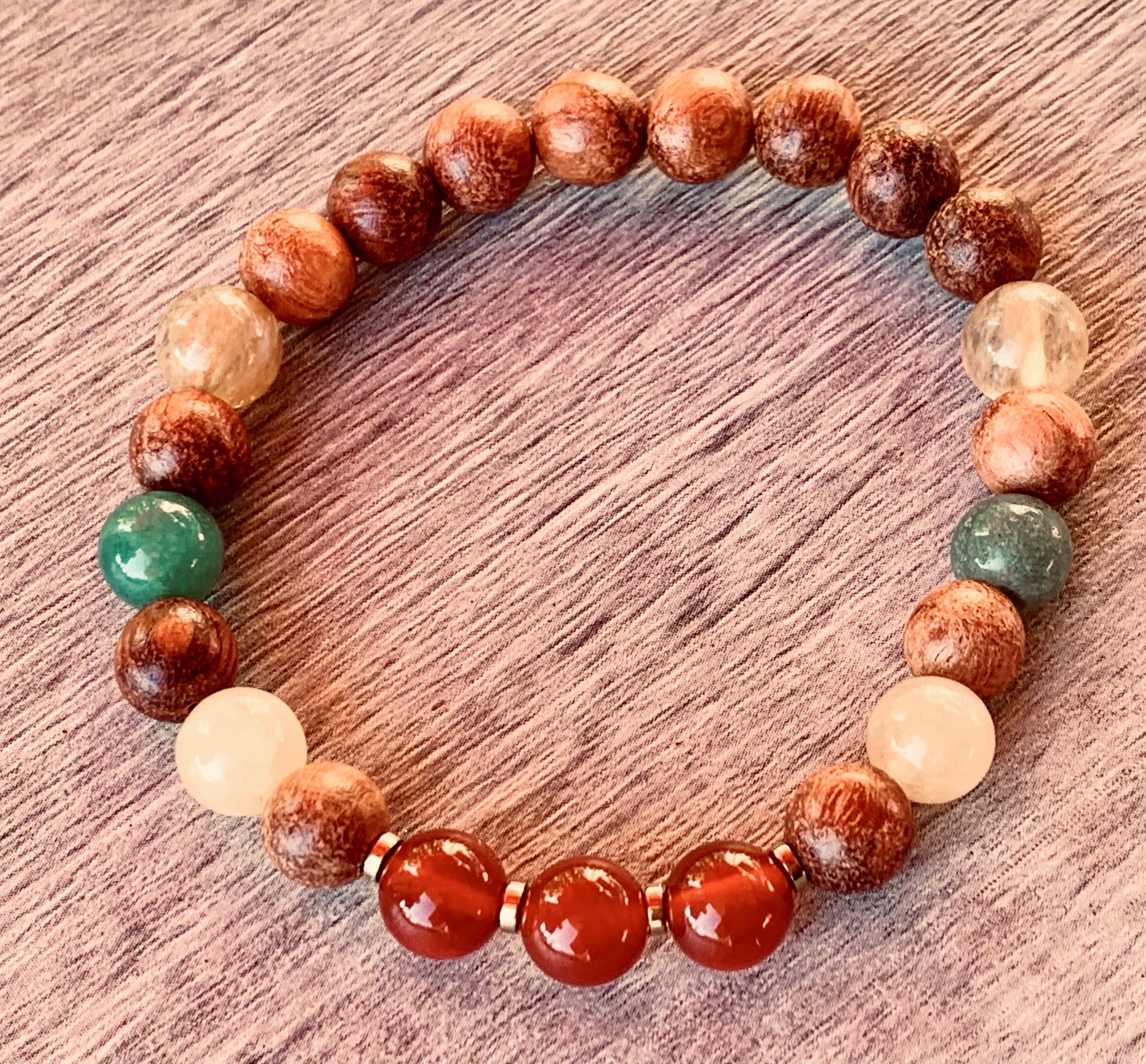 Presley Handmade Carnelian, Citrine, Jade, and Sandalwood Expandable Bracelet
