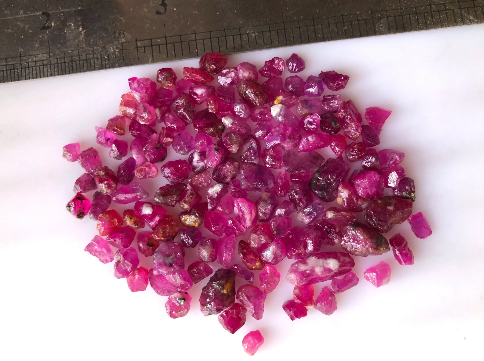 - Total weight of the rough ruby parcel is 100 carats with average size around 1.2 carats, ranging from under 1 carat to 4.2 carats